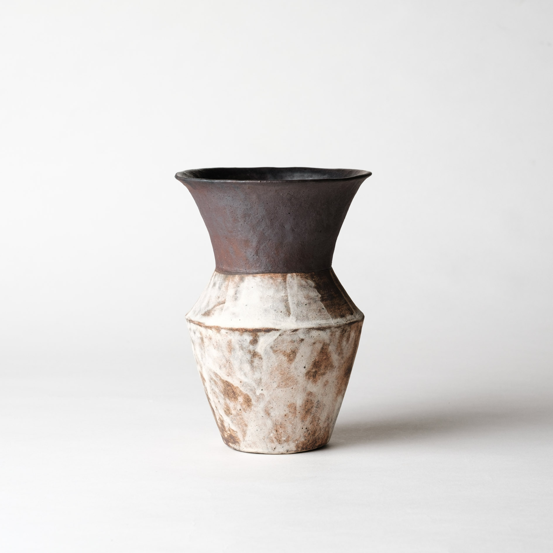 HOME > 岩田智子 > 商品詳細 > IT20056 広口花器 錆 Details 直線的だけど柔らかいかたちの花器。下地の鉄釉の上から白い化粧土の刷毛目を塗ることで生まれる濃淡が絵画のような雰囲気を醸し出しています。 Materials:陶器 商品番号 IT20059商品名 岩田智子/広口花器 錆 #59サイズ 径約 12cm×16.5cm通常価格 18,700円 (税込)備考 SOLDOUT ページトップへ